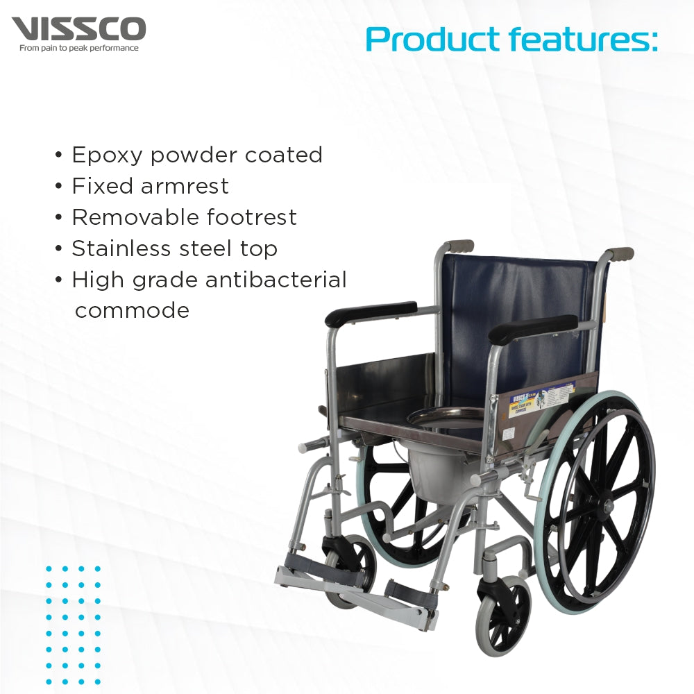 ![Vissco Comfort Wheelchair with Commode Comes With Fixed Arm-rest |Removable footrest |Washable Plastic Bucket|For Elderly & those physically challenged|Weight Capacity 110kg - Universal (Grey) - Vissco Rehabilitation]()
