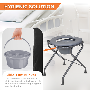 Equipped with a detachable commode bucket for hassle-free cleaning. Makes maintaining hygiene quick and effortless.