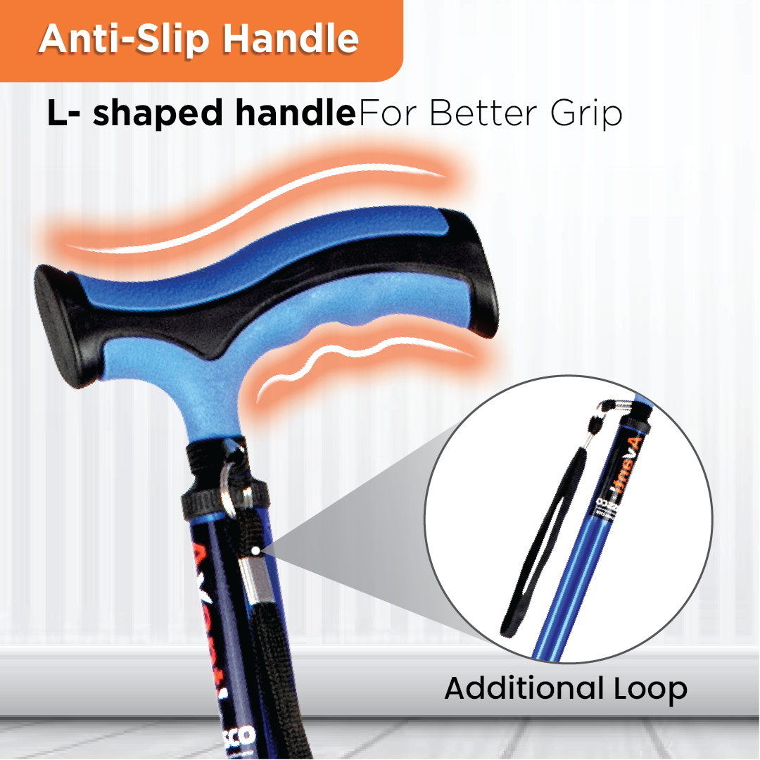 The stick weighs under 0.46 kg & supports a person’s weight up to 100 kgs. making it very stable. It has an elegant look and is durable