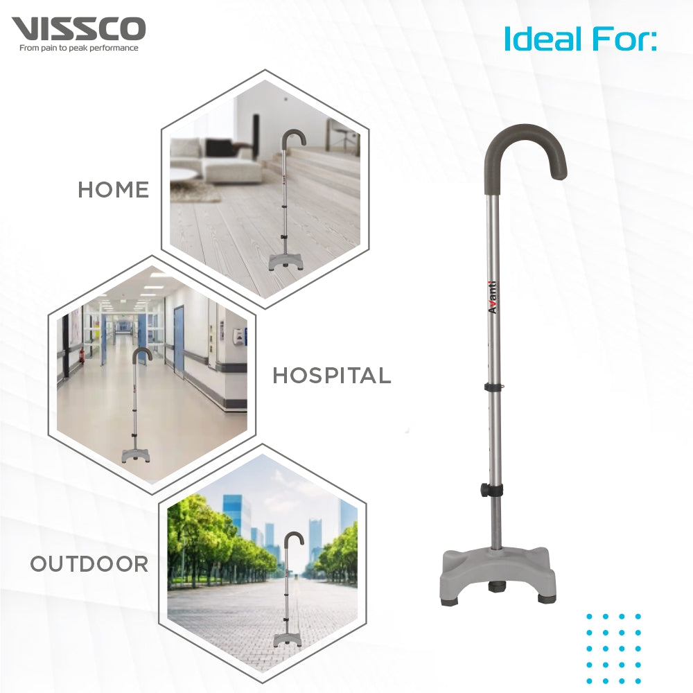 Avanti U Shape Quadripod Stick | Walkig Stick with Adjustable Height | Light Weight | 4 Legged Base (Grey) SKU - 0908
