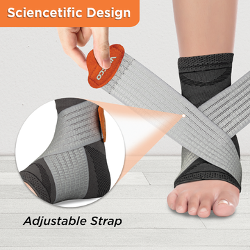 Pull the Ankler like a sock and wrap the straps to form a figure of eight shape Lock the straps and tighten as per comfort.