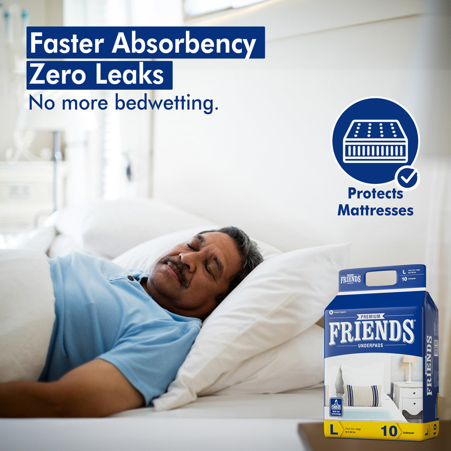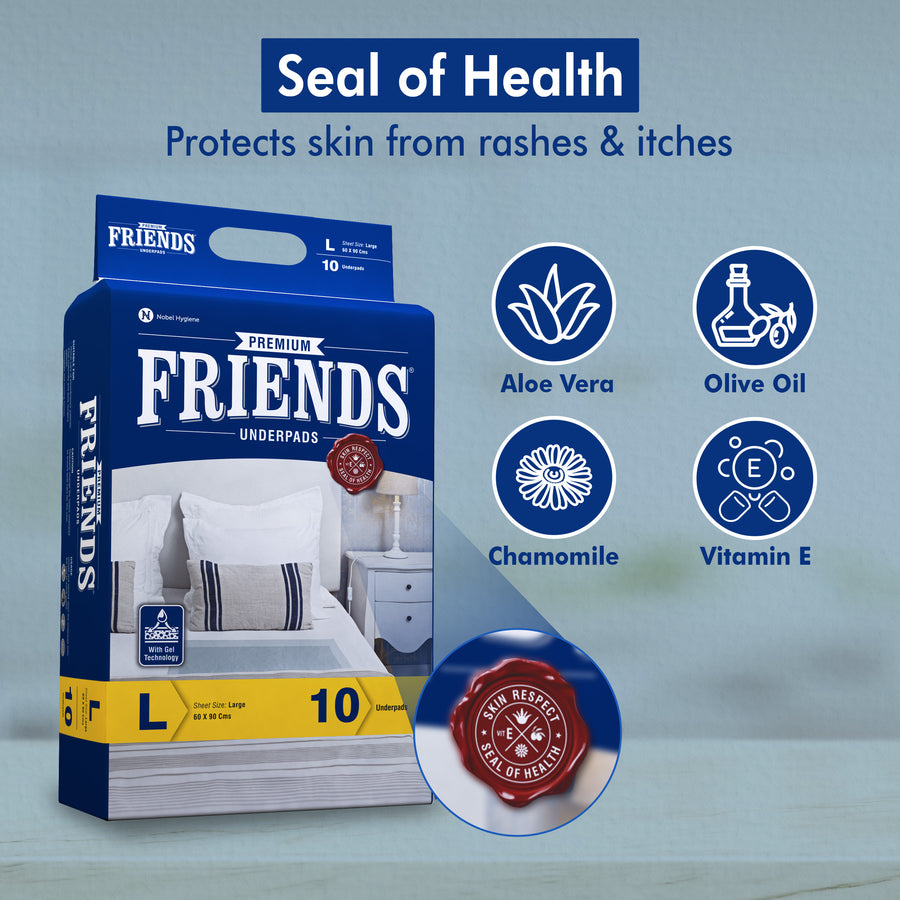 Stay protected and bacteria free with Friends Premium Underpads Anti-Bacterial surface