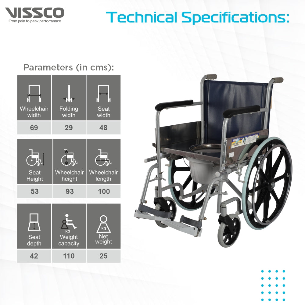![Vissco Comfort Wheelchair with Commode Comes With Fixed Arm-rest |Removable footrest |Washable Plastic Bucket|For Elderly & those physically challenged|Weight Capacity 110kg - Universal (Grey) - Vissco Rehabilitation]()