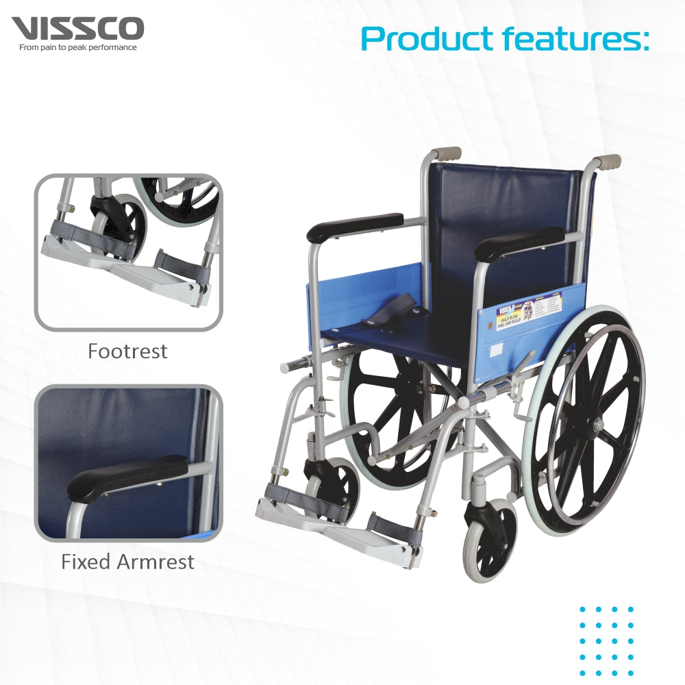 This wheelchair has fixed armrest and MS Swing-Away Legrest with high grade Plastic Footplate, which makes it comfortable & convenient for the use of the patient.