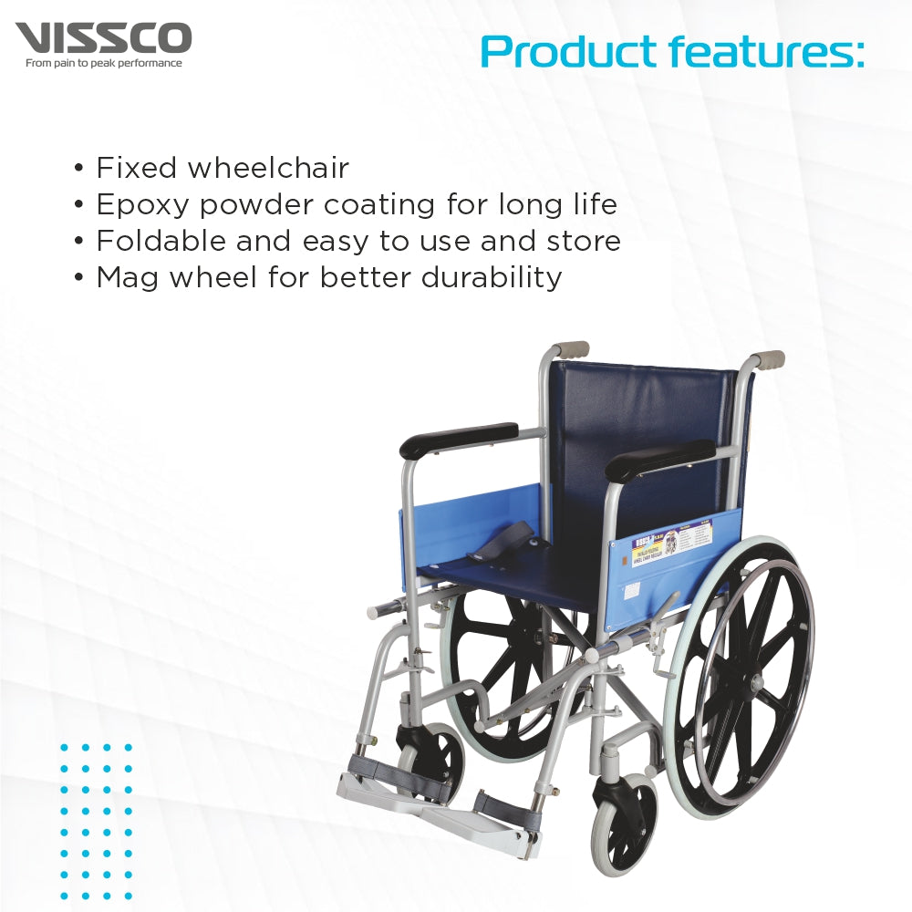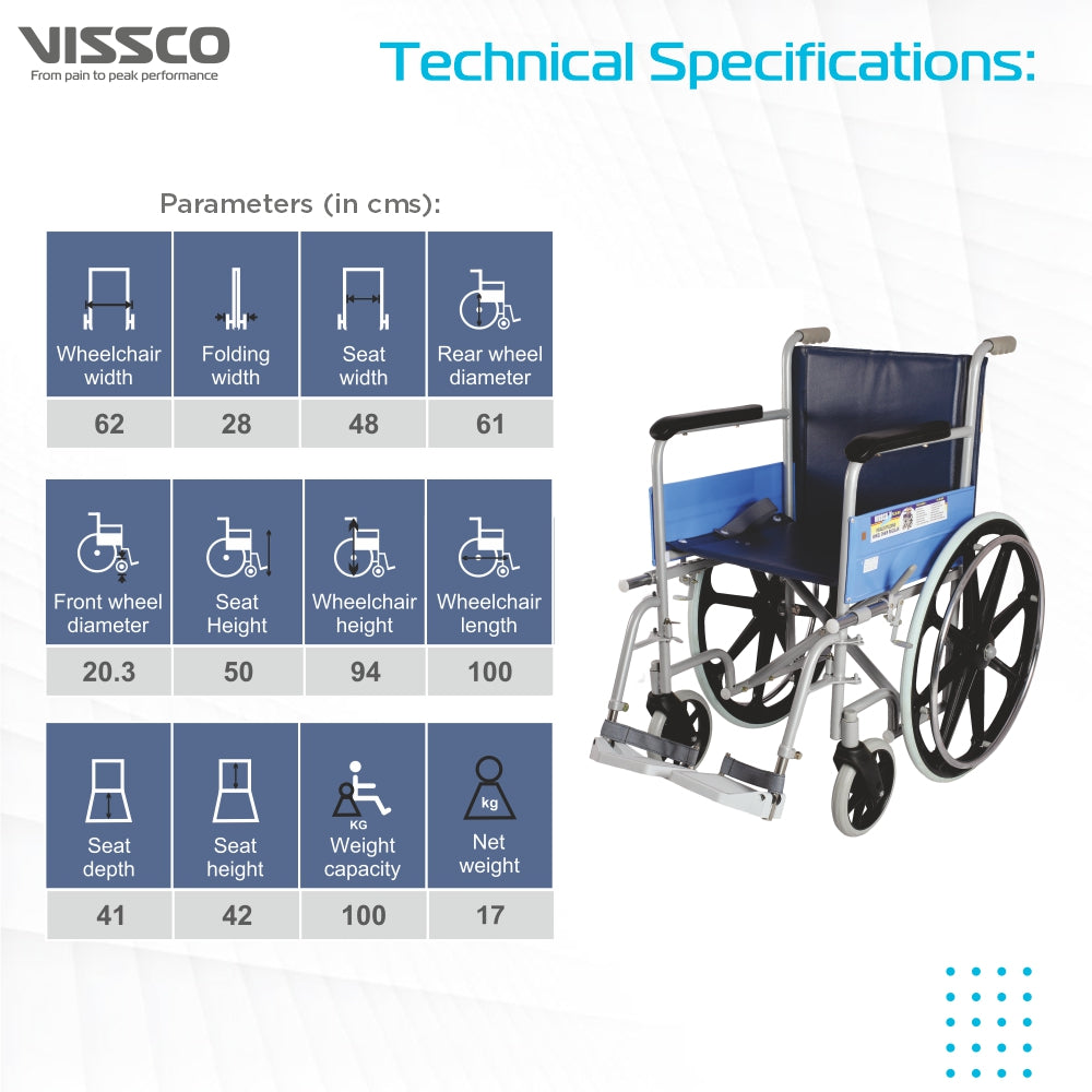 The wheelchair has 2 Mag Wheels and is designed for self and attendant propelling which makes the wheelchair durable with a weight-bearing capacity of 100Kgs.