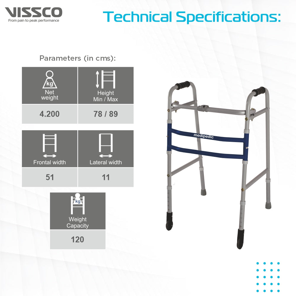 Can be adjusted to suit individual needs. Walker height can be adjusted from 78 cm to 89 cm from the ground to the walker hand grips.