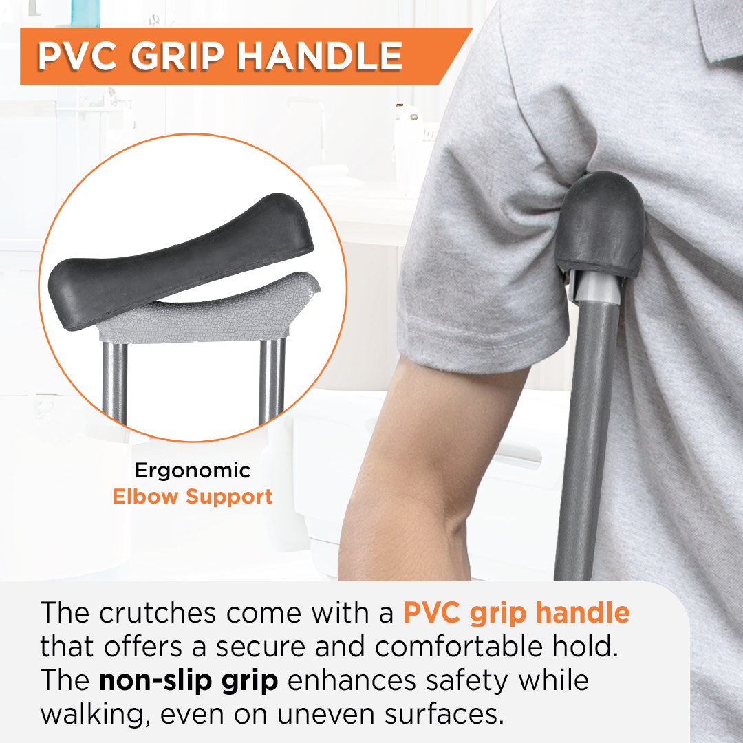 The Under arm crutch comes with a layer of rubber pad to allow comfort and improved range of motion