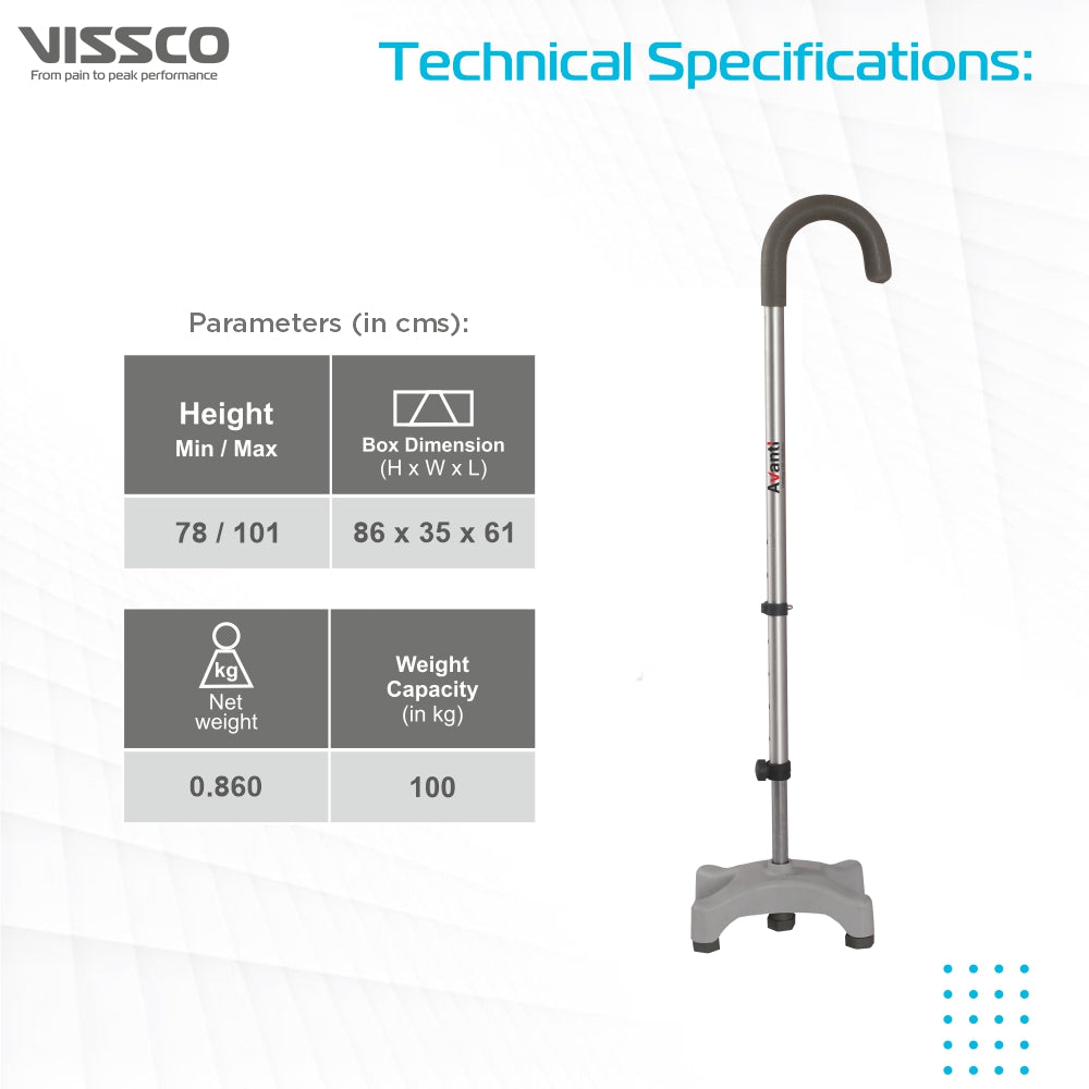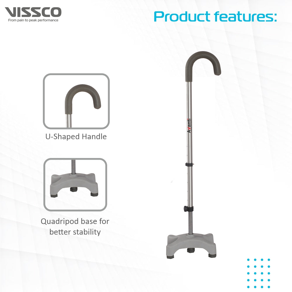 Avanti U Shape Quadripod Stick | Walkig Stick with Adjustable Height | Light Weight | 4 Legged Base (Grey) SKU - 0908