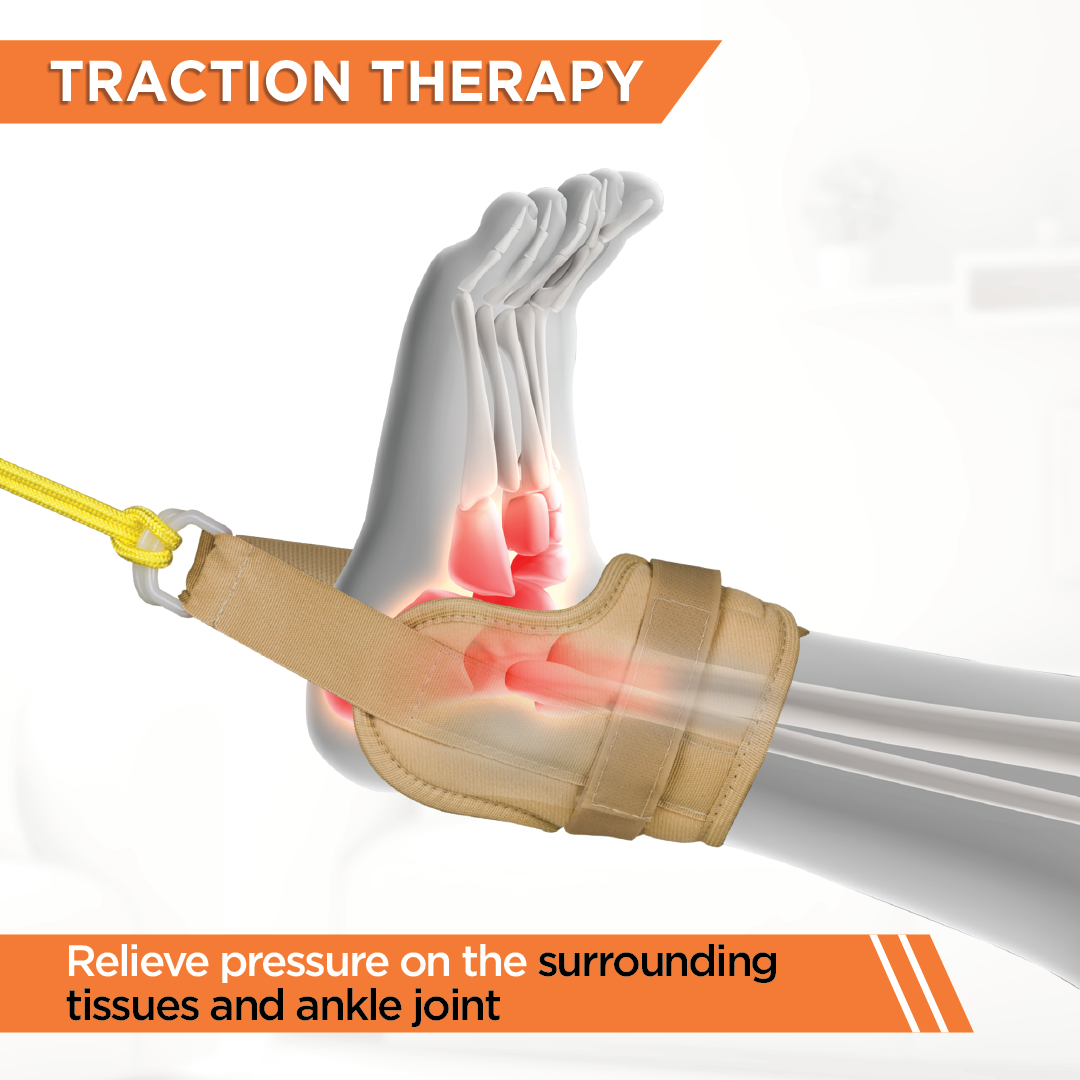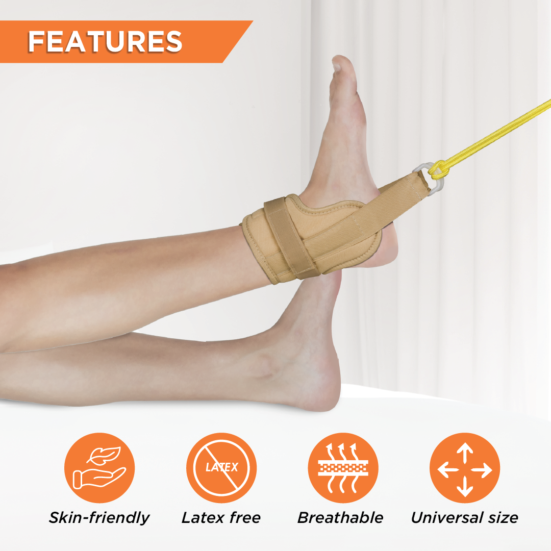 Wrap around the foot and ankle such that the binder forms a figure of eight shape, Fasten with Velcro for a firm and comfortable grip